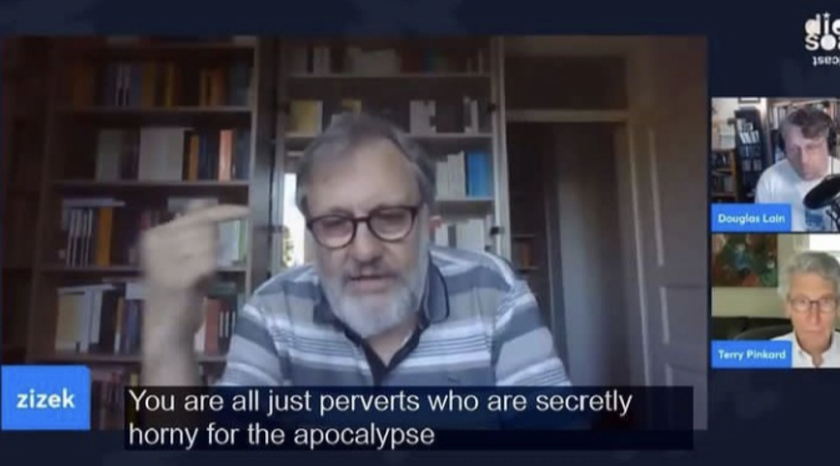 In 1987, the year when I was down and out with zero prospects, I started working in a squatters free radio station and made radio programs on radical intellectual culture. This is a good therapy to get familiar with one’s voice and to learn how to read texts. I do not have a big ego so it took a long time for me to familiarize myself with performing on stage, or in front of the microphone (I am still not a huge fan of the camera). In 1999, the last year in radio, I produced a CD with readings and music/sound mixes, produced by the Supposé label in Cologne called Electronic Solitude. This was already dark ;) Twenty years later, John (who was once a student of mine) and I produced the Sad by Design album with eight tracks (which is online here and on most music platforms) under the name We Are Not Sick. Around 2017 I switched my lectures to a more performative format, with a slide show in the background that no longer explains projects or websites. John immediately got it that I do have to sing or rap. I am in fact reading the text slowly, they are repeated, and it’s spheric. As you may have noticed I am into aphorisms, quotes, and slogans (or sloganism, as I call it). Like so many projects, the album remained unnoticed because it came out in the darkest of the Covid period. At least we were able to perform a few times with the Transmediale one as a highlight, weeks before the first lockdown, in the big red hall of Volksbühne. Bernard Stiegler was there. It was the last time I saw him. An unforgettable evening.