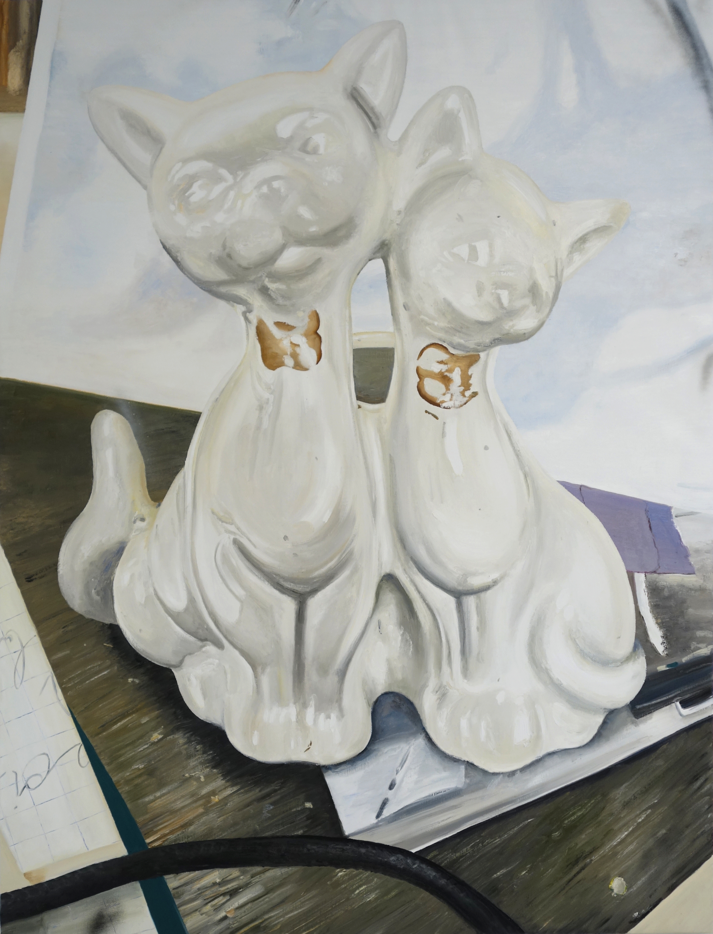 There are often personal stories behind my paintings, since many of the objects come from my direct environment, but I find it interesting that they are not necessarily told, so that the canvases remain "open" to viewers, so that everyone can find echoes of their own lives and memories.