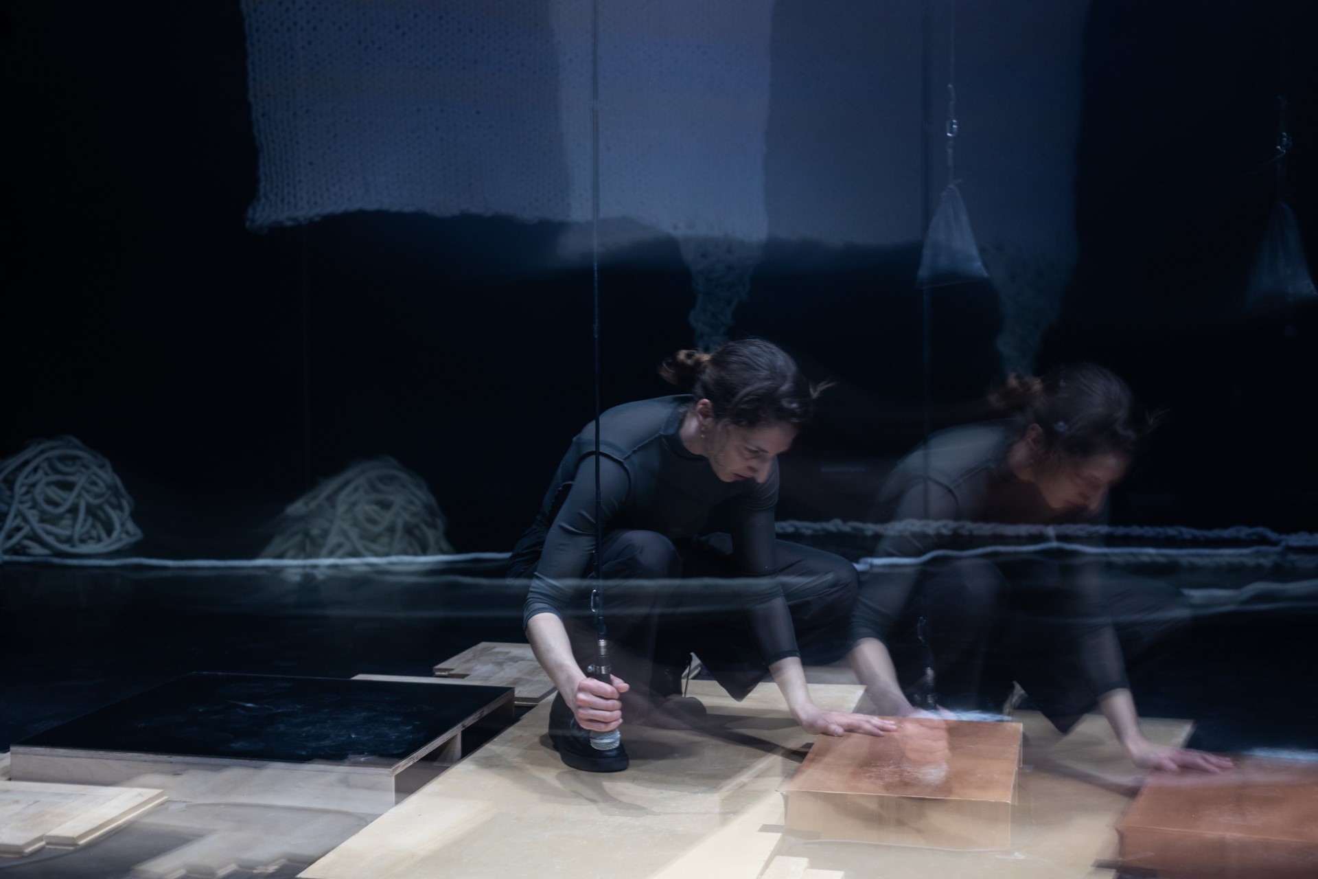 MOS, Ioanna Paraskevopoulou, Fotoğraf: Pinelopi GerasimouYunan dans sahnesinin yükselen genç sanatçılarından Ioanna Paraskevopoulou iki işiyle farklı saatlerde Onassis Stegi’nin beşinci katındaki Üst Sahne’deydi. Paraskevopoulou 2022 tarihli ödüllü işi MOS’u tekrar sahnelerken, All of my love adlı yeni işini de ilk defa seyirciye sundu. Paraskevopoulou iki yapıtında da bedenin ve nesnelerin hareketi ile, bu sırada çıkan sesler arasındaki gerilimli ilişkiyi asimetrik ve çizgisel olmayan anlatılarla ortaya serdi. Sahne ikisinde de bir yerleştirme gibi nesnelerle düzenlenmişti. Paraskevopoulou, ilkinde performansçı partneri Georgios Kotsifakis ile, ikincisinde tek başına bu nesneleri kullanarak ses peyzajları oluşturdu. İkisinde de video görüntüleri önemli bir öğeydi.