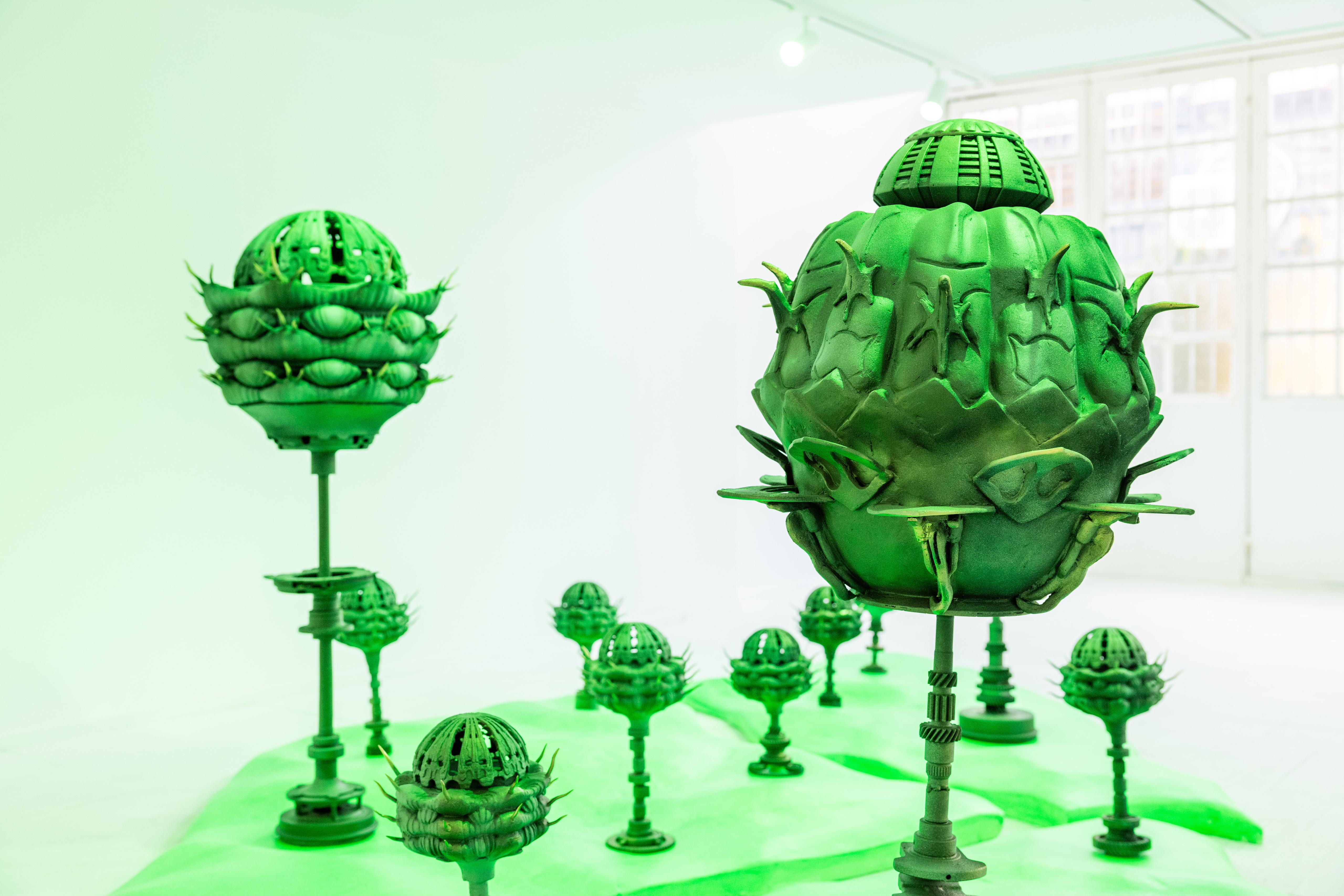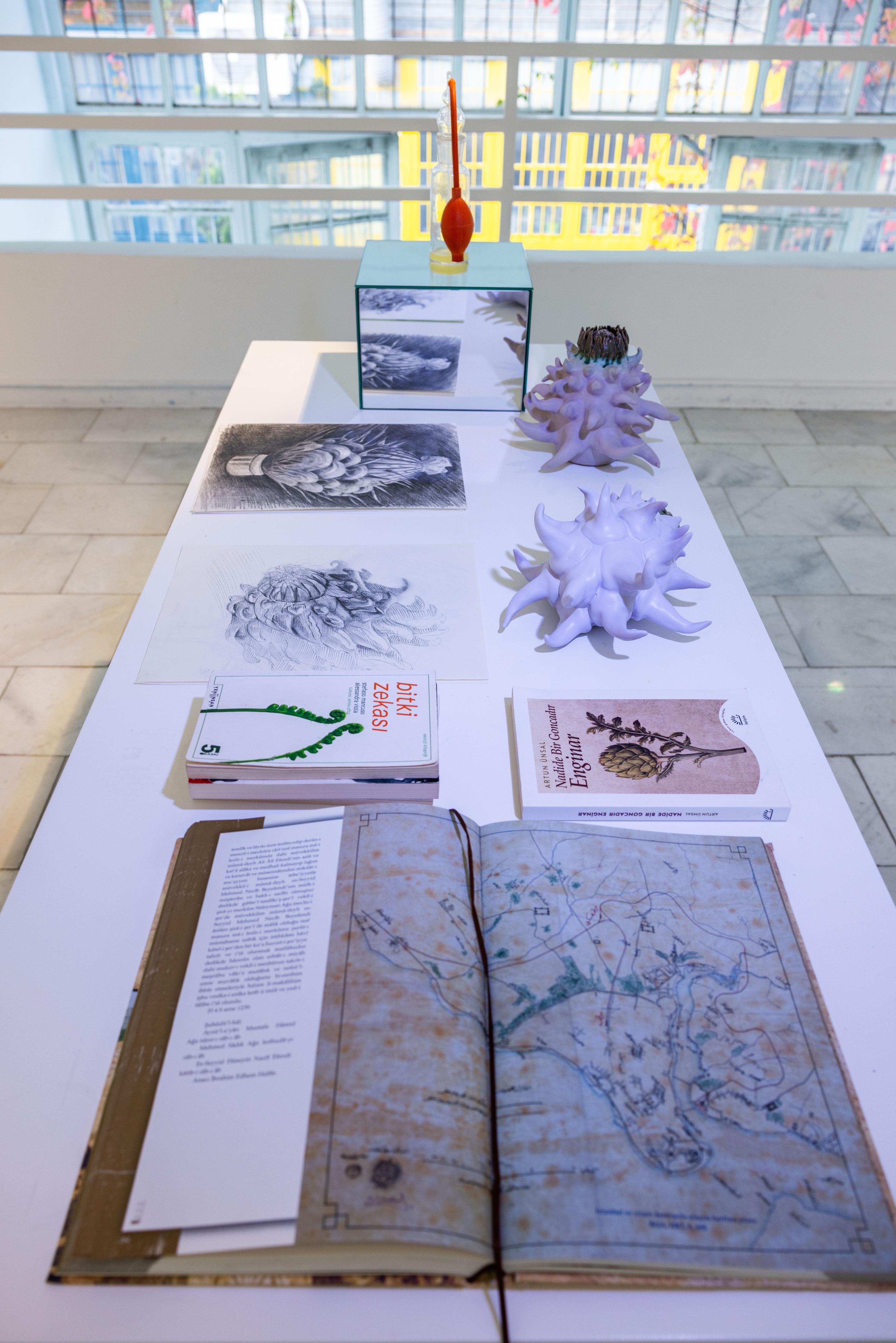Tıpkı sanatçı Cansu Sönmez’in sergide enginar üzerinden kurduğu yapay gerçekliğin yardımıyla yaratmaya çalıştığı ütopya kavramı gibi. Sir Thomas Moore’un Utopia isimli kitabında bahsettiği üzere ütopyanın esas amacı bilinenin aksine mutluluk değil, toplumsal düzen ve mükemmelliktir. Her şeyin mükemmel olması kavramı da aslında ütopyanın sınırları belirlenmiş bir mekân olduğuna işaret eder. Ütopyalarda doğa ve yaşanılan gezegen, genellikle insan merkezci bir bakış̧ açısıyla hareket eden üstün akıllı varlığın hizmetindedir. Günümüzde doğayı ehlileştirdiğini düşünen insan, aslında kentleşirken kendi yapay doğasını yarattığı ütopik bir distopyadan öteye geçemez. Ütopya hevesiyle başlayıp distopyaya uzanan bu alacakaranlık yolda ise çoğu zaman fark etmeden hem kendi doğasından hem de tabiattan kopmaya başlar.