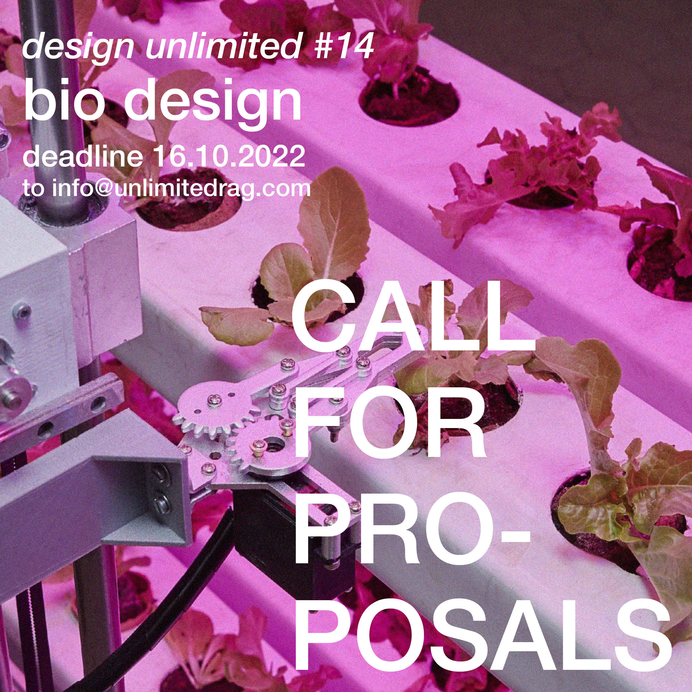 Design Unlimited'ın 14. sayısı için yaratıcı endüstrilerden katılımcı olmak isteyenlerin "bio tasarım"konusuna odaklanan projelerini, fikirlerini veya araştırmalarını bizimle paylaşmaya davet ediyoruz.