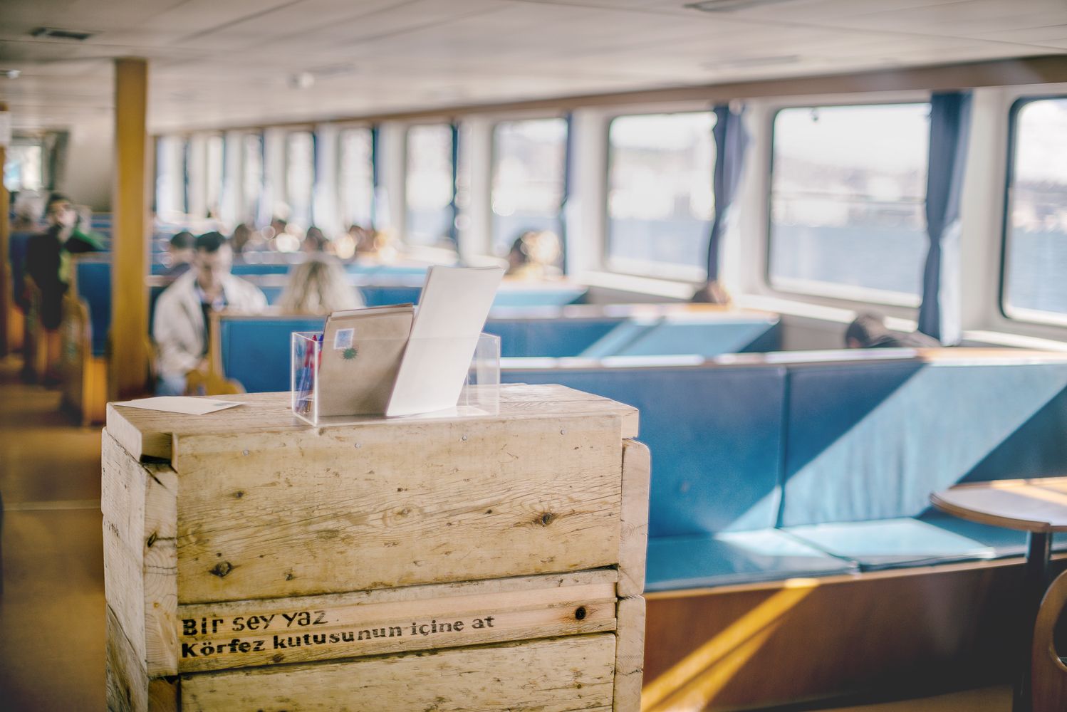 Vapura mektup kutusu koymak hatta abartıp Körfez Kutusu ismini vermek… İşin ismini de Ceylan Postası koymak… Ne hoş zamanlardı. Hiç unutmuyorum, tüm heyecanınla yanıma gelip mobil, amorf ve kamusal bir iş istemiştin. Tam bir fikir sancısı yaşatmıştın bana itiraf edeyim. Bu iş kendi kendine çok hikâye yarattı. Kutuyu Nesin Sanat Köyü’nde ürettim. Servet Cihangiroğlu ve Nesin Köyü’nün eşsiz dostlarının desteğiyle köyün marangozhanesinde canavar ve yatar kullanmayı öğrenerek ürettim o işi. Karşıya geçmekten en zevk aldığım vapuru seçtik, izin alabildik ve yerleştirdik! Tam 333 adet mektup yazılıp atıldı karşıya geçerken o kutuya. Ben pek aile kökenleri veya kimlikleri üzerine çalışan biri değilim fakat Ceylan Postası'nda bariz bir metafor vardı: Mübadele. Anneannemi kaybettikten sonra karşı kıyılar ister istemez dönüyordu kafamda. Bir şiir yazmıştım kutunun üzerine hatırlıyor musun? “Durul biraz çünkü deniz fazla hareketli, otur ve karşı yakadan birine bir şey yaz. Körfez kutusunun içine at.” Körfez denizlerin hafızasıdır. Her şeyi toplar ve hatırlar. Körfez Kutusu da İzmir Körfezi’nin tarihsel süreçte biriktirdiklerinin temsilini arıyordu. Göç Hikâyeleri Festivali iş birliğiyle düzenlenen arşiv sergisinde de açtık Ceylan Postası’nı, Basmane Kapılar’da. Mahallenin çocuklarıyla kutuyu açıp mektupları okuduk ve Ceylan Postası yolculuğunu tamamladı.