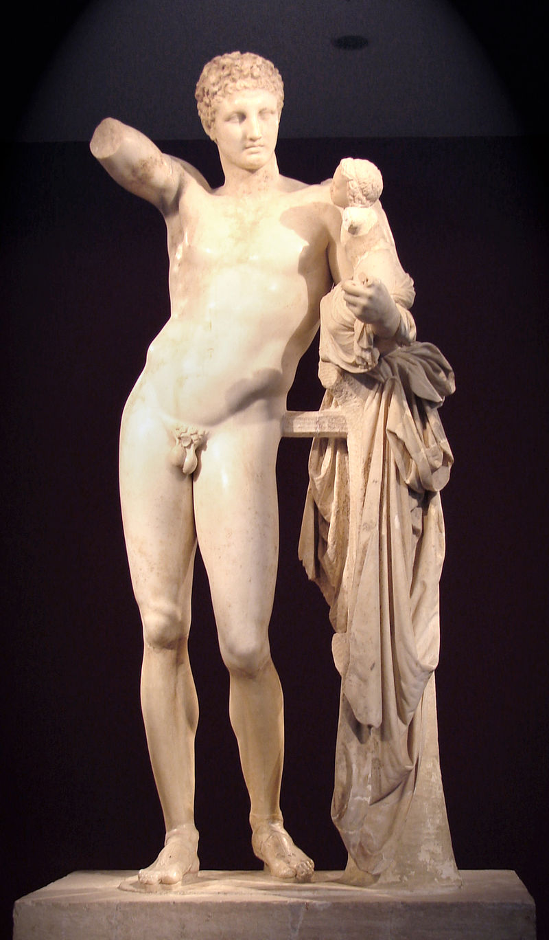 Hermes ve Dionysos, Praksiteles, İÖ 4. yy, 215 cm, paros mermeri, Olympia Arkeoloji Müzesi, Yunanistan