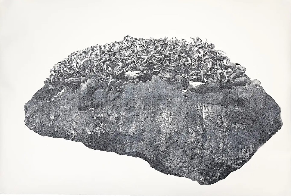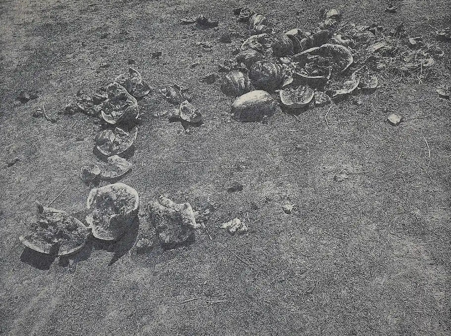Deniz Aktaş böyle “hontolojik” bir çalışma ya da kazı yapan sanatçılardan biri. Yıkıntılara, harabelere ve terk edilmiş yerlere (ya da şeylere) dair işleriyle bir ‘görünmeye bakma’ hamlesi yapıyor. Ya da bir an için görülüp geçilen şeye bir daha, ağır ağır bakma hamlesi. Bu hamleyi bir önceki sergisi Tesadüfi Bir Kronolojinin 76 Parçası’nda görmüştük, bilhassa da Umudun Enkazı ve Floating Pieces adlı serilerde.[ii] Enkazlara ve terk edilmiş şeylere bakma ve baktırma isteği. Genelde “resmetmeye değer bulunmayan” şeyleri resmetmenin getirdiği bir “estetik-politik” alan var burada.