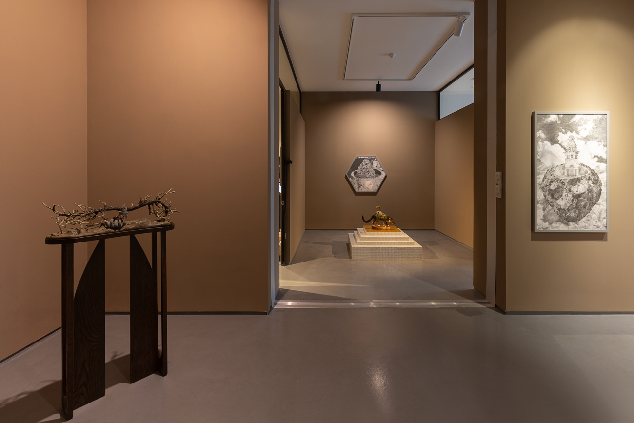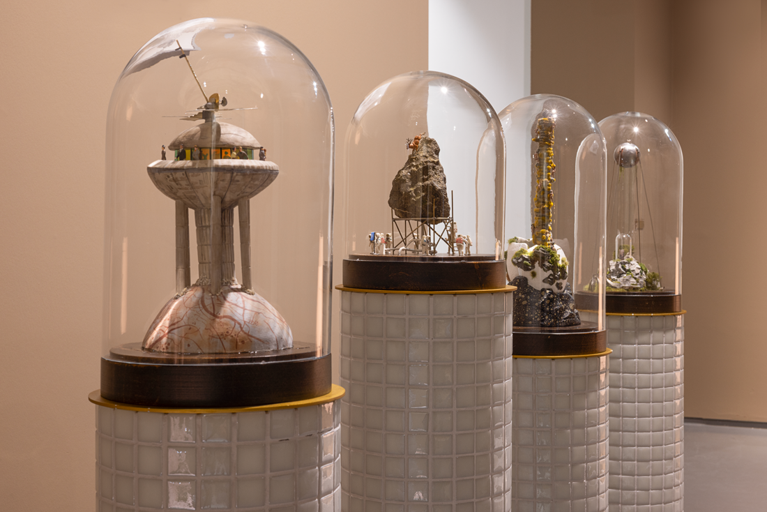 Deniz Üster, TERRA NULLIUS: Yerçekiminin Hasadı, Sergiden görünüm. .artSümer'in izniyleTam bu noktada, Birand’dan Caillois’e uzanan çağrışım hattına, Edward O. Wilson’ın Half-Earth Project'ini de katmak istiyorum. Wilson’ın dilimizdeki çevirisiyle Yarım Dünya olarak adlandırılan projesi doğal ekosistemlerin korunması için çığır açan bir girişim. Bu proje, dünya üzerindeki tüm biyoçeşitliliği korumak amacıyla insan faaliyetlerinin sınırlanması gerektiğini savunur. Wilson'a göre, bu hedefe ulaşmanın en etkili yolu, dünya yüzeyinin yarısını insan müdahalesinden uzak tutmaktır. Buna göre, bu alanlar, vahşi yaşamın sürdürülmesi için kritik öneme sahip olacaktır. Proje, ekosistemlerin dengesini koruyarak türlerin devamlılığını sağlamanın yanı sıra insanların doğayla uyumlu bir şekilde yaşamasını teşvik etmeyi amaçlar. Bu vizyon, doğal dünyanın korunması için küresel bir çaba gerektiğini vurgularken, aynı zamanda insanlığın doğayla olan ilişkisini yeniden değerlendirme ve sürdürülebilir bir gelecek için harekete geçme çağrısında bulunur.