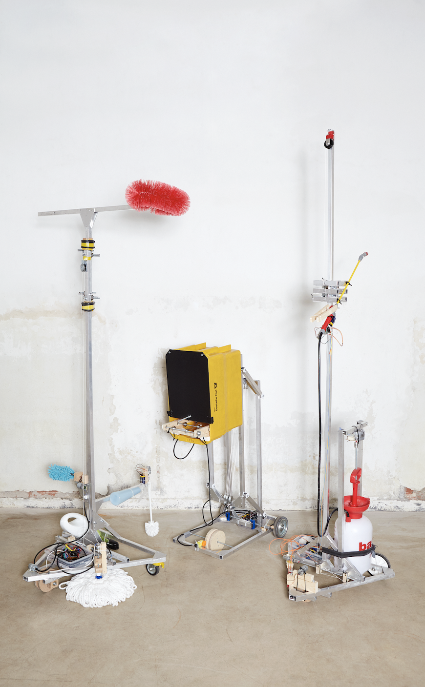 İlk çalışmanda üç robot vardı, bu robotların değindiği çalışma alanlarını nasıl seçtin? Bu da son derece sezgisel oldu. Çalışmalarım süresince robotlar geliştirmeye başladım. Alanları belirlemek için, kendi gündelik yaşamımla ya da rutinlerimle hangi mesleklerin kesiştiğine bakmaya başladım. Ufak tefek stajlar yaptım: Önce hastane, sonra kuaför salonlarına ziyaretlerim oldu. Bu konuda çalışmak isteyen üç kişiyle tanıştım. İşte bu önemli bir noktaydı; yani bu projeye dahil olmak isteyen kişiler bulmak. Benim için geçerli bir neden daha vardı; ben bir tasarımcı olarak bir yazılım değil, gözle görülen, elle tutulan bir şey yaratmak istiyordum. İlk bakışta anlaşılması mümkün bir şey oluşturabileceğim bu üç mesleği seçmemin bir nedeninin de bu olduğunu düşünüyorum.