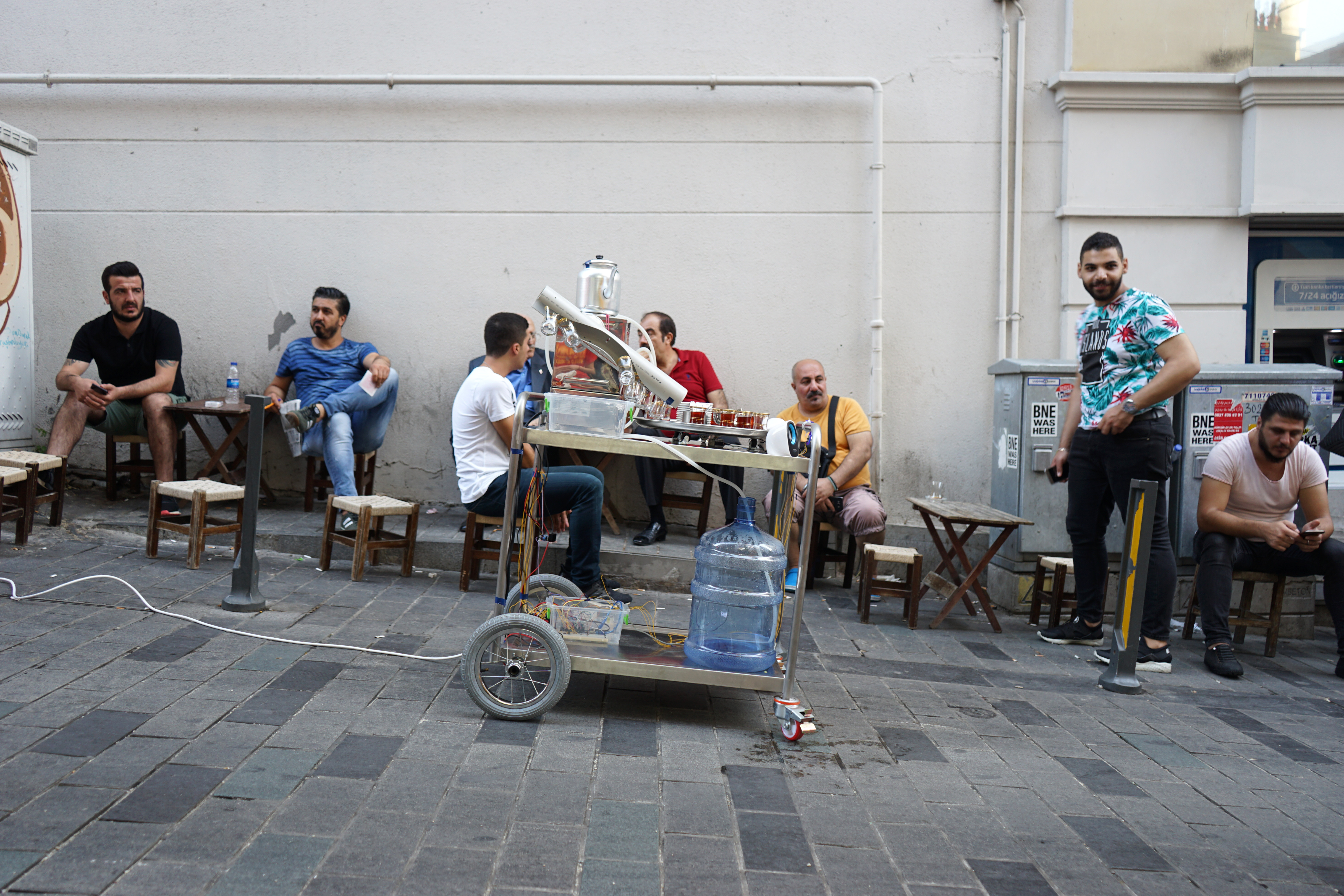 Bunun hakkında İstanbullularla pek çok konuşmam oldu; bana siyasi bakış açısını da anlattılar. Fakat ben siyasi meselelere odaklanmak istemedim; benim ana odak noktam emekti. Çayı hazırlayan kişiyle bire bir ilişki kurma şansınızın daha yüksek olduğu küçük çay ocaklarında daha çok zaman geçirdim. Başlangıçta asla yüzde yüz rahat hissetmiyordum. Çay ocaklarında hep bir sürü erkek oturuyordu. Dış kısmında, sokakta da oturulabilen küçük çayevlerini tercih ettim.