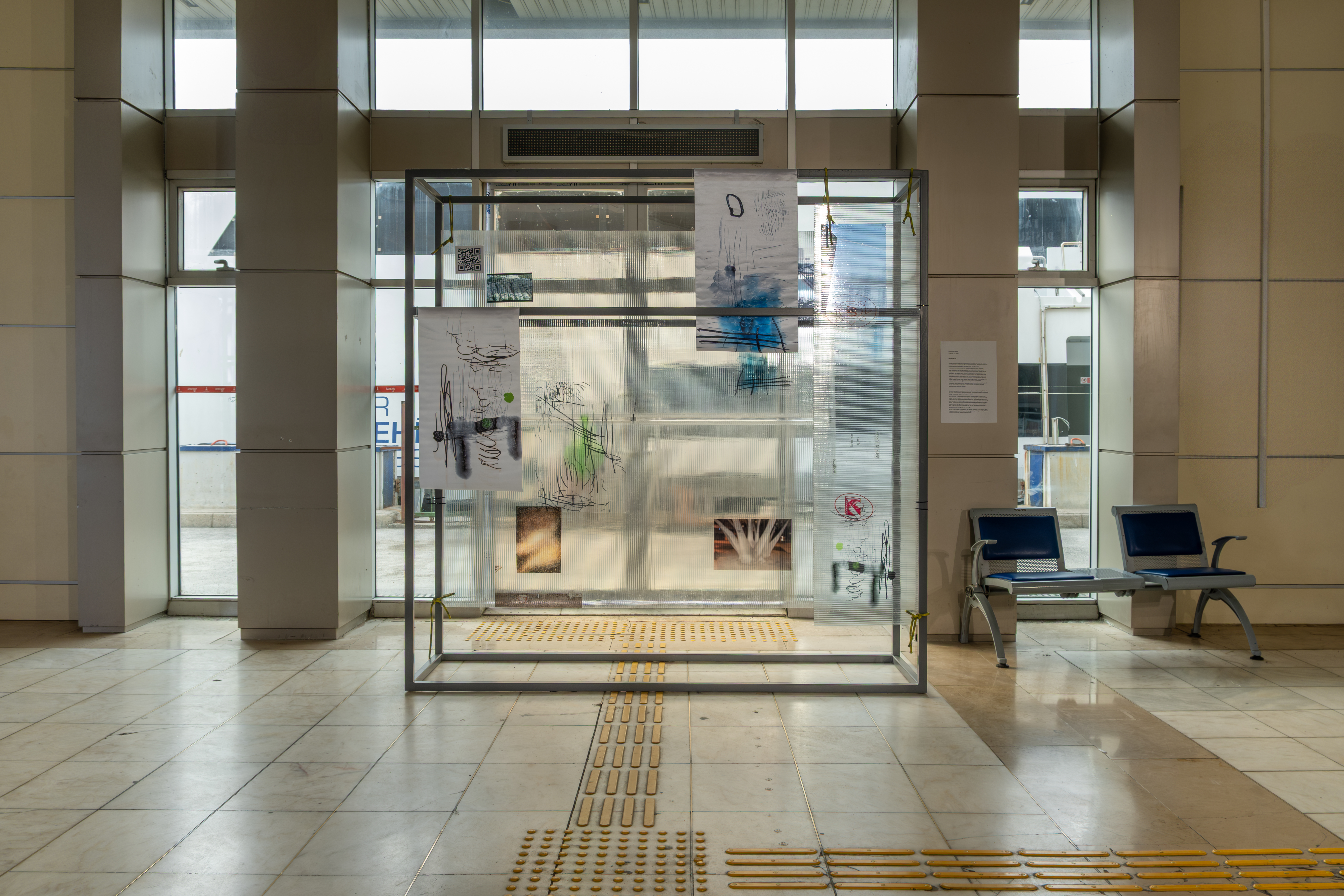 Sanatçılar, bekleme alanları ve geçiş mekânları üzerinden henüz gerçekleşmemiş olanın arayışına odaklanıyor. Ezgi Yakın, Ufuk Beklentisi II adlı çalışmasıyla ulaşım güzergâhındaki bekleme eylemini umut ve hayalci bir imgelemle ilişkilendirirken, Zeynep Beler, Yüzey Tuzluluğu adlı yerleştirmesinde polikarbon gibi yarı geçirgen yüzeylerle iç ve dış mekân arasındaki geçirgenliği sorguluyor.