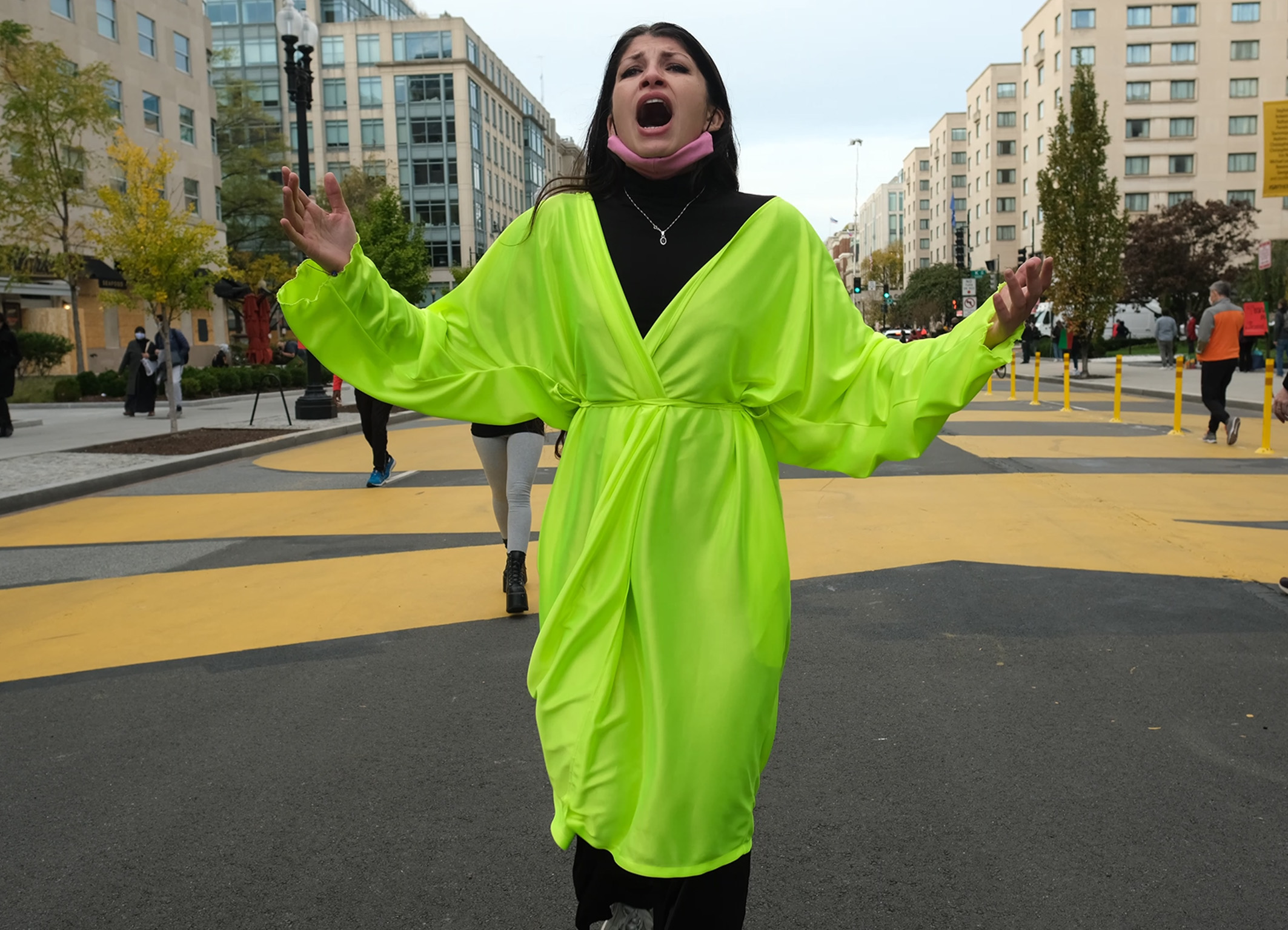 AilenizinSanatYazarı – Ve yine bir espri geldi! Bu performansın adı Hiçbir Fikrin Yok, 2020 ABD Başkanlık seçimleri günü Selma’nın Washington D.C.’de, Beyaz Saray’ın önündeki Black Lives Matter Plaza’da, siyasi propagandalar arasında etrafındakilere aldırmadan ‘hiçbir fikrin yok’ sözünü bağırarak yürüme performansını belgeleyen bir video. Ötekileştirmenin arttığı bu dönemde Selma, güvensizlik, iletişimsizlik, korku ve kaygı ortamında bu negatif duygulara tepki vererek çevresiyle iletişim kuruyor.