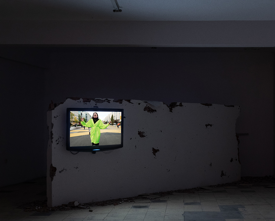 AilenizinSanatYazarı – Buradaki çalışmanın üç kanallı video/ses yerleştirmesi olduğunu görüyorum. Adını göremedim kamerayı yaklaştırsana.