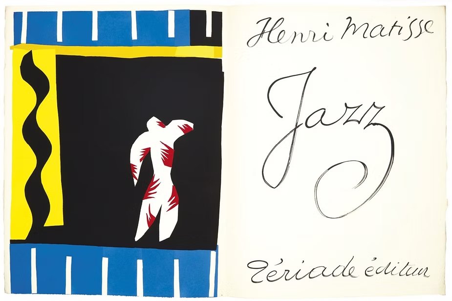 Bunlardan biri de Jazz decoupagelarıyla Henri Matisse olacaktı. Savaş öncesinde dingin, renkli iç mekanlara ağırlık veren bu Fransız, ikinci savaştan ve Caz Çağı denen 1930’ların sona ermesinden sonra, kestiği renkli kağıtları çeşitli biçimlerde bitiştirecek ve en sonunda bunları Jazz adını verdiği kitapta, 1947 senesinde toplayacaktı.
