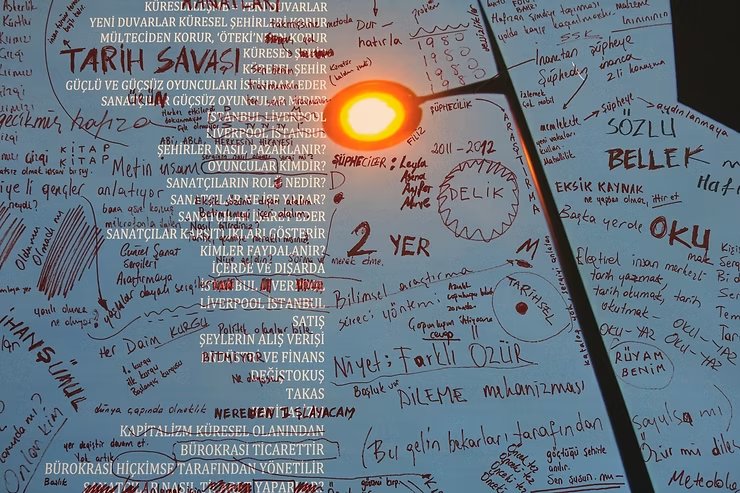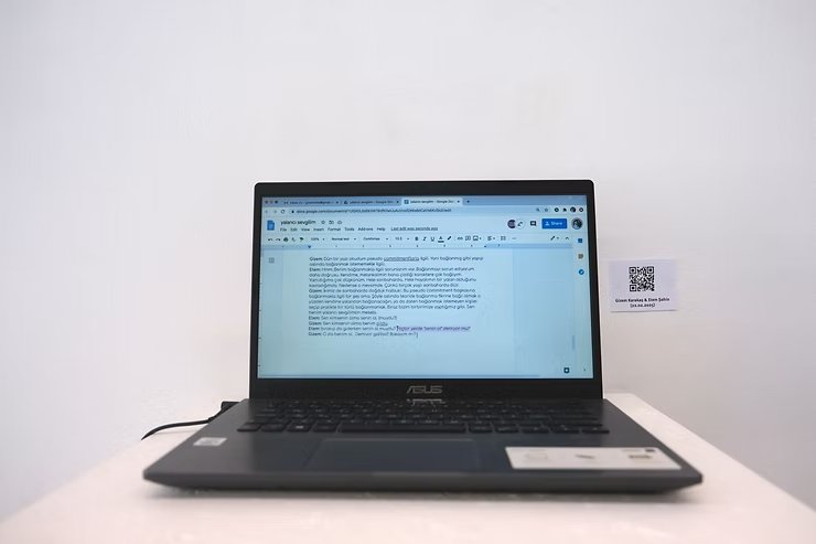 Pandemi dönemiyle beraber sağlıklı olarak kabul edilen yaşam alanlarının neredeyse sadece evlerden ibaret kalması ve sokağa çıkma yasakları, performans sanatı pratiklerinin yeni bir boyutunu ortaya çıkardı: Gizem Karakaş ve Etem Şahin’in Yalancı Sevgilim adlı “interaktif performansları”. Sanatta bedenin ve bedene yüklenen anlamların eleştirel bir sorgulaması performans sanatçıları tarafından da yapılıyor. Klasik anlamda performans, sanatçının bedeni fiziksel ve duygusal deneyimleri iletmenin bir yolu olarak gördüğü, seyircilerin dikkatini sanat nesnesinden sanatçının eylemine kaydıran ve bedenin sanatsal üretimdeki rolünü vurgulayan bir pratiktir. Yalancı Sevgilim hem Oya-Bora’nın aynı adlı şarkısına dayanıyor hem de sanatçıların 22 Şubat 2025 tarihinde sergi kapsamında gerçekleşen konuşmalarındaki birlikte çalışırken partner gibi oldukları ama bir yandan da (sevgililiği kastederek) gerçek anlamda bir partner olmadıklarını söylemelerinden geliyor. Videoda sanatçıların bu performans için “ortak bir Google Dökümanlar” belgesi açıp iki sevgili arasında geçebilecek bir diyalog yazdıklarını fakat her ikisinin de birbirlerinin yazdıklarına müdahale ettiklerini görüyor ve aynı anda Zoom veya Google Meets gibi bir uygulama aracılığıyla yazdıkları üzerine yaptıkları neşeli konuşmaları duyuyoruz. Bu yapıt sergi alanında bilgisayar üzerinden sergileniyor. Bu sergileme tercihi bence yapıtın video olarak değil de interaktif performans olarak deneyimlenmesini beraberinde getiriyor. Performans sanatı saçaklarına ayrılıyor. Sanatçıların eylemlerine odaklanıyoruz evet ama gerçek değil sanal bir mekân ve zamanda.