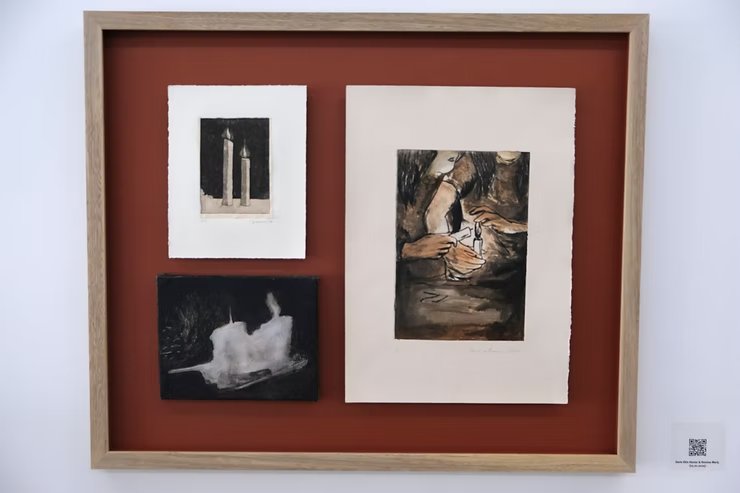 Romina Meriç ve Derin Ekin Kenter ikilisinin hem kendi aralarında hem de bir nesne olarak mumla kurdukları ilişki mumun ifade imkânlarının çeşitlenmesini sağlıyor. Sergide sanatçıların tek başlarına ve beraber ürettikleri yapıtlardan oluşan 37,5°C (2025) adlı bir düzenleme yer alıyor. Düzenlemedeki yapıtlardan biri olan ve Derin Ekin Kenter tarafından üretilen Direnç [Resistance](2024) adlı yapıtta gravür kağıdının üzerine akuatint ile iki adet mum basıldığını, Romina Meriç’in ürettiği İki Mum [Two Candles] (2020) adlı yapıtta kâğıt üzerine yağlı boyayla iki adet mum resmedildiğini ve ikilinin birlikte ürettiği 37,5°C (2025)’de yanan bir mumu tutan bir el ve mumdan faydalanarak ısınan bir elin resmedildiğini görüyoruz. Sanattaki ifade imkânları farklı bileşenlere sahip malzemelerin birbirleriye kurduğu ihtimama dayalı birlikteliklerle çeşitlenir. Bu nesnelerarası ihtimam ilişkileri sanatçılar açısından da pratiklerinin birbirlerine bulaşmasına, çeşitlenmesine, üretilen ortak yapıtların başka alanlara yayılmasına imkân sağlar. Bu sergideki sanatçılar ve sanat yapıtlarında nesnelerarası ihtimama dayalı ilişkinin farklı bir boyutuyla karşılaşıyorum. Bu düzenleme mumun yaydığı ışığın yol göstericilik, sıcaklık, samimiyet, fedakârlık gibi mefhumları sanatçıların tek başlarına ve kendi aralarında nasıl problematik hale getirdiklerini gösteriyor. İkili bu yapıtla insan vücudunun 37°C’lik normal sıcaklığının mumun yaydığı sıcaklıkla beraber arttığını ve bu sıcaklığın aynı zamanda dostluğun bir göstergesi olduğunu vurguluyorlar.