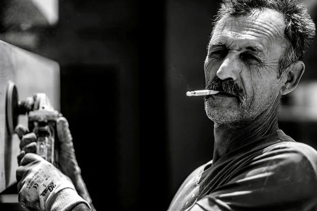 Portresini çekmeyi en sevdiğim kişi Aydemir'di. Nazik enerjisini ve röportajımıza verdiği düşünceli cevaplarını çok beğendim. O, Eskişehirli bir alçı ve kaynak ustası ama kendisi de başlı başına bir sanatçıymış; boş vakitlerinde karakalem çalıştığından kitap için söyleşi yapılana kadar haberimiz bile yoktu. Bir de ince işler formeni Eşref'i fotoğraflamaktan gerçekten keyif aldım. Estetik açıdan, resimlerinin kesinlikle kitaptaki favorilerim olduğunu söyleyebilirim. Fotoğrafları baskıdan çıktıktan sonra görmek gerçekten etkileyiciydi - işte o an yaptığımız kitap ve proje için inanılmaz heyecanlandım. Portreler, şimdiye kadar çektiğim en sevdiğim resimler arasında yerlerini aldı.