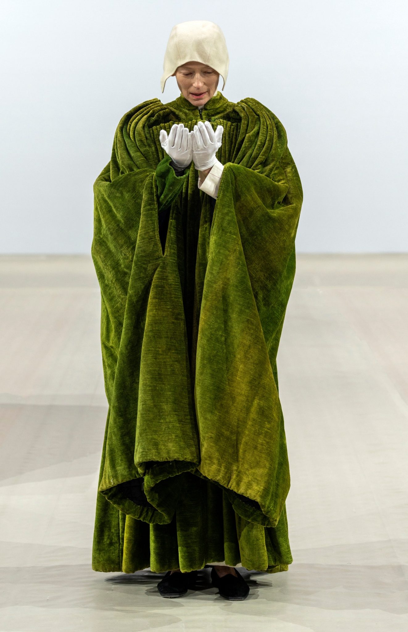 “Ondan giysileri cisimleştirmesini istedim ama her durumda değil. Swinton her bir kostümün kaidesi oluyor.” Saillard.
