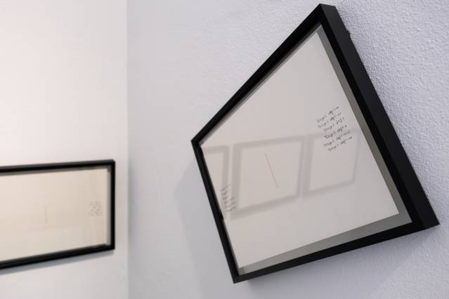 Betül Aksu, nereli eki serisi, 2024, Kâğıt üzerine karbon mürekkebi ve pamuk iplik Her biri 30 × 42 cm, 14 adet