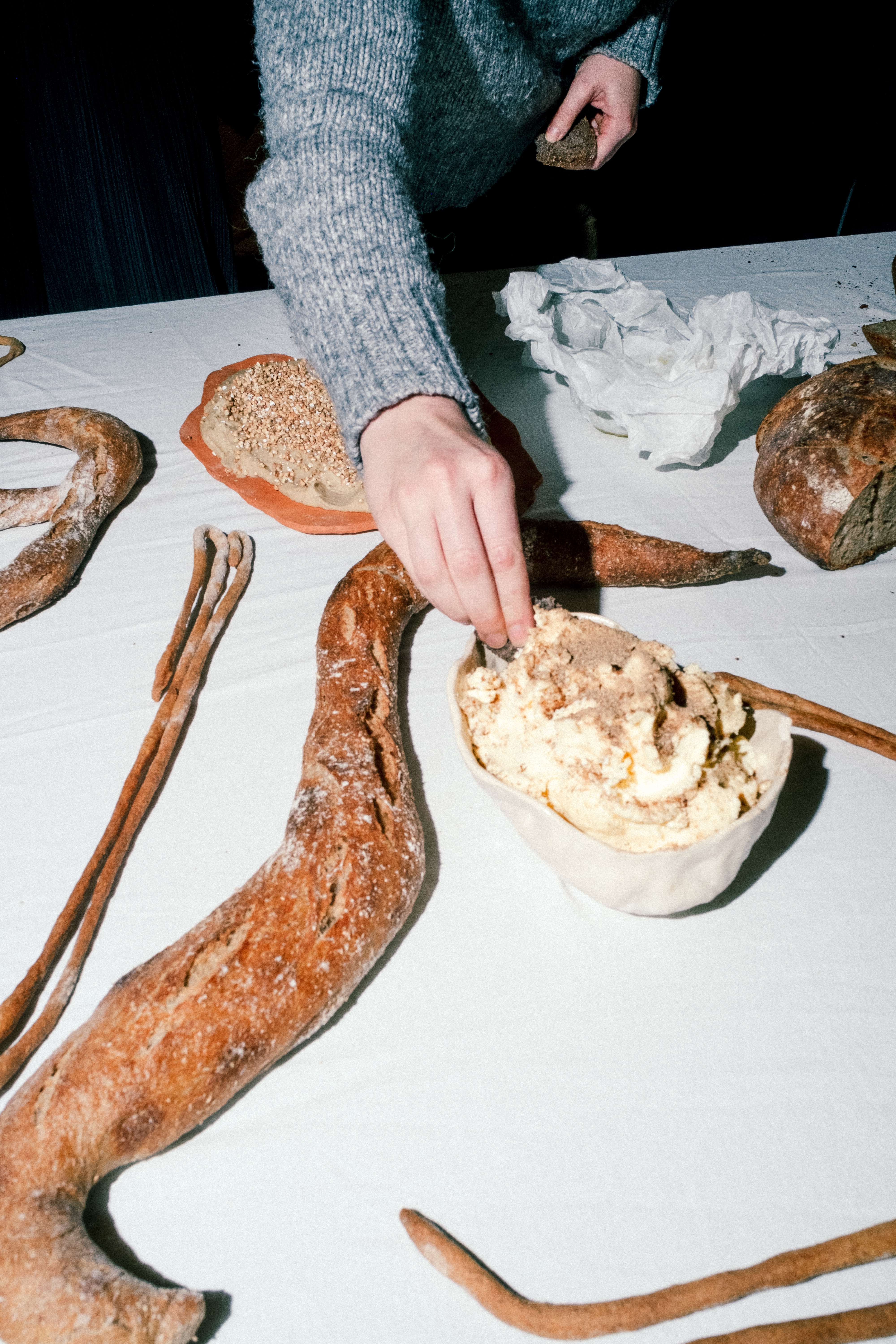 Yemeği çevresel etki ve sürdürülebilirlik gibi daha geniş konuları tartışmak için bir araç olarak görerek, canlı varlıkları tüketmek ile etik gıda seçimleri arasındaki karmaşık dengede geziniyoruz. Son olarak, gıda üretimini keşfetmek ve gıda ile daha derin bir bağ kurmak için araç olarak gördüğü ekmek pişirme girişimlerini kapsayan sanatsal pratiğinin son uygulamalarına da yer veriyoruz.