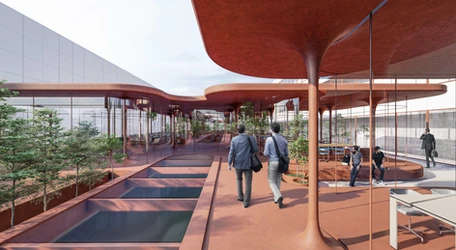 Ecotone, bir geçiş, habitat, geçiş zonu demek aslında. İki habitat arasındaki geçiş zonu demek. Burada tabii, teknopark projesi olduğu için, teknopark, teknoloji ofisleri de üniversiteyle teknoloji veya piyasa arasındaki bir geçiş zonu olduğu için, bir Ecotone durumu var bir taraftan; bir taraftan da bu iki yapı arasında böyle, iki bina arasında bir durum var. Masterplan’da önceden inşa edilmesi planlanmamış bir yapı. Bu yüzden aslında; temelsiz, yani mevcut bir yapının üstünde duran bir yapı, iki yapının arasına sıkışan bir yapı. Bu yüzden de biraz yapıyla açık alan arasında da bir şey, hani bu tür de bir Ecotone durumu, yani bir geçiş alanı durumu var. Projenin hareket noktası bu oldu, yani bu bir tam yapı olarak tanımlayabileceğimiz bir şey değil, daha aralıkta bir şey. Bunu hani bildiğimiz yapı tipinde şekillendirmeye çalışmayalım, kendine özgü bir şekilde oluşturmaya çalışalım diye düşündük. Biz projeye başladığımızda, yani aslında müşterinin, yani teknopark tarafından gelen brief’e göre inovasyon odaklı ofislerin yer alabileceği bir ara yapı isteniyordu; ve işte teknolojik, inovatif yönü önemliydi bunun. Ama, biz projeye başladığımızda pandemi patlak verdi; ve Covid ortaya çıktı. Böylelikle projenin durması söz konusu oldu, yani gelecekte ofislere ihtiyacımız olacak mı; ofisler bildiğimiz gibi mi olacak; insanlar bir araya gelecek mi; bu tartışmalar malar başladı; tabii finansal durumlar falan da söz konusuydu. Bu yüzden proje süreci içinde, bir tür değişikliğe uğradı yani gen bozumu, işte bir tür mutasyon diyelim, biraz mutasyona uğradı süreçte. Biz de tasarımı çalışırken Covid’e, yani Covid’in getirdiği durumlara karşı sağlıklı bir cevap olabilecek şekilde projeyi evrilttik; ve bu şekilde kabul gördü, bu şekilde proje hem kurtuldu; hem özgün bir yere geçti; hem de işte pandemiyle birlikte nasıl yaşayacağımızın geleceğiyle ilgili bir öneride bulunma fırsatımız oldu.