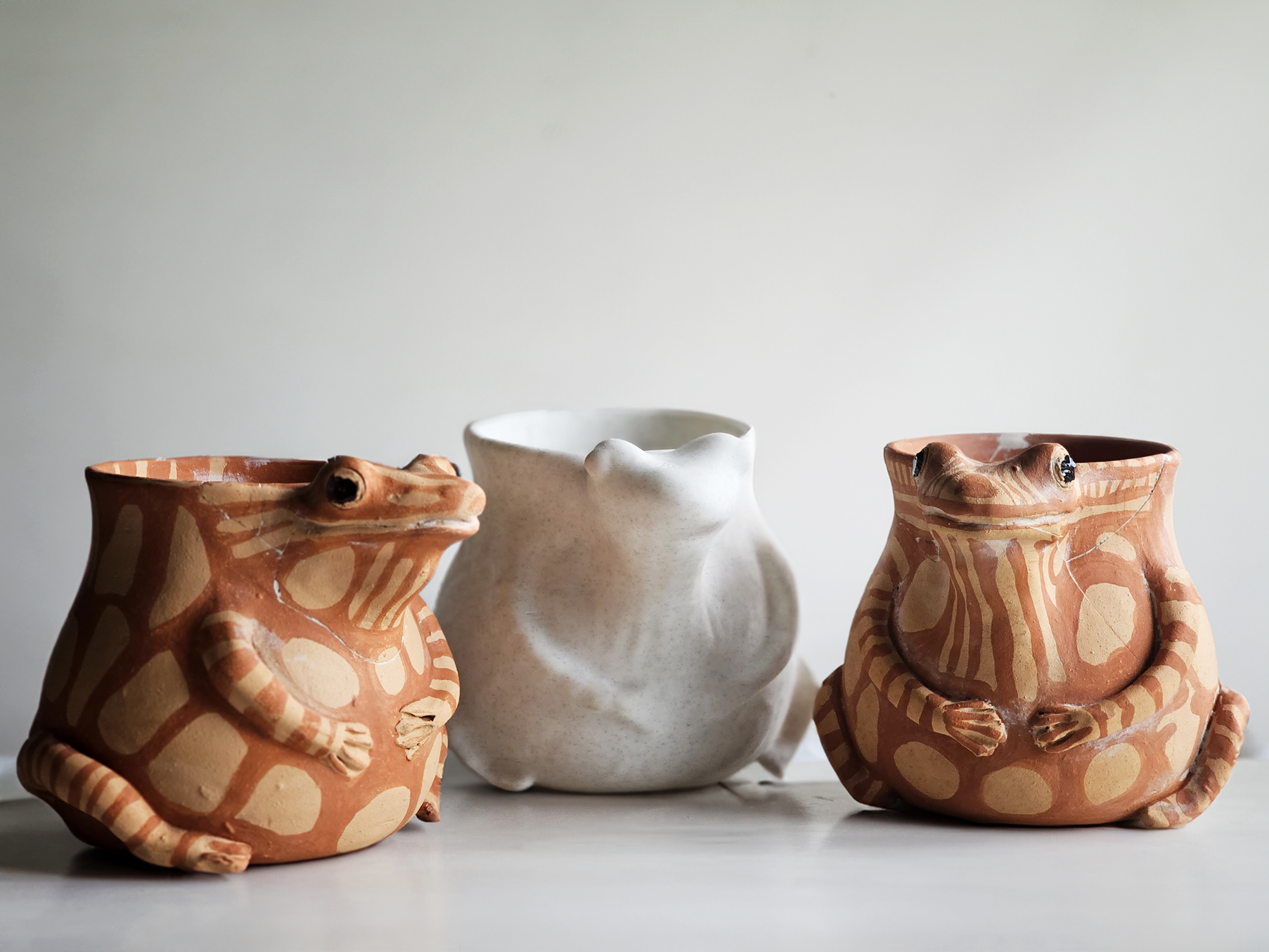 Tıpkı sergi sürecinde sanatçıların ürettiği kurbağa ritonları gibi. Riton, ya da sunak kapları, genellikle dini ve ayinle ilgili konularda içki veya sıvıların saklanması ve sunulması için kullanılan özel bir kaplara verilen isimdir. Antik dönemlerden bu yana farklı kültürlerde önemli bir rol oynayan ritonlar çoğu zaman kişiye veya duruma özel olarak tasarlanmış figürlerden oluşur. Sergideki kurbağa ritonları da, aynı işlevini yitiren gotik dillerin gramerleri gibi, arkeolojik kazılarda bulunan orijinal formlarında tasarlanmadılar ama o formların bıraktığı izlerden hareketle günümüze, yani anın gelecekteki haline bir gönderme olarak yeniden canlandılar. Ve günümüzde geçmişten bir iz düşümü olarak dini ayinler yerine bir sanat sergisinde boy gösterdiler.